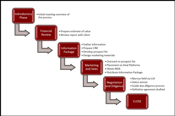 Deciding to sell your business is a process and we will walk through that process with you. We meet to discuss your needs and your goals. We gather information from you including your business financial performance, operations, market performance and position and other pertinent information to determine a value range for your business. The information and assessment will help you determine if now is the time to move forward with a transition or there is work to be done on the business to get you to where you need to be to achieve your goals and/or to be attractive to potential acquirers.